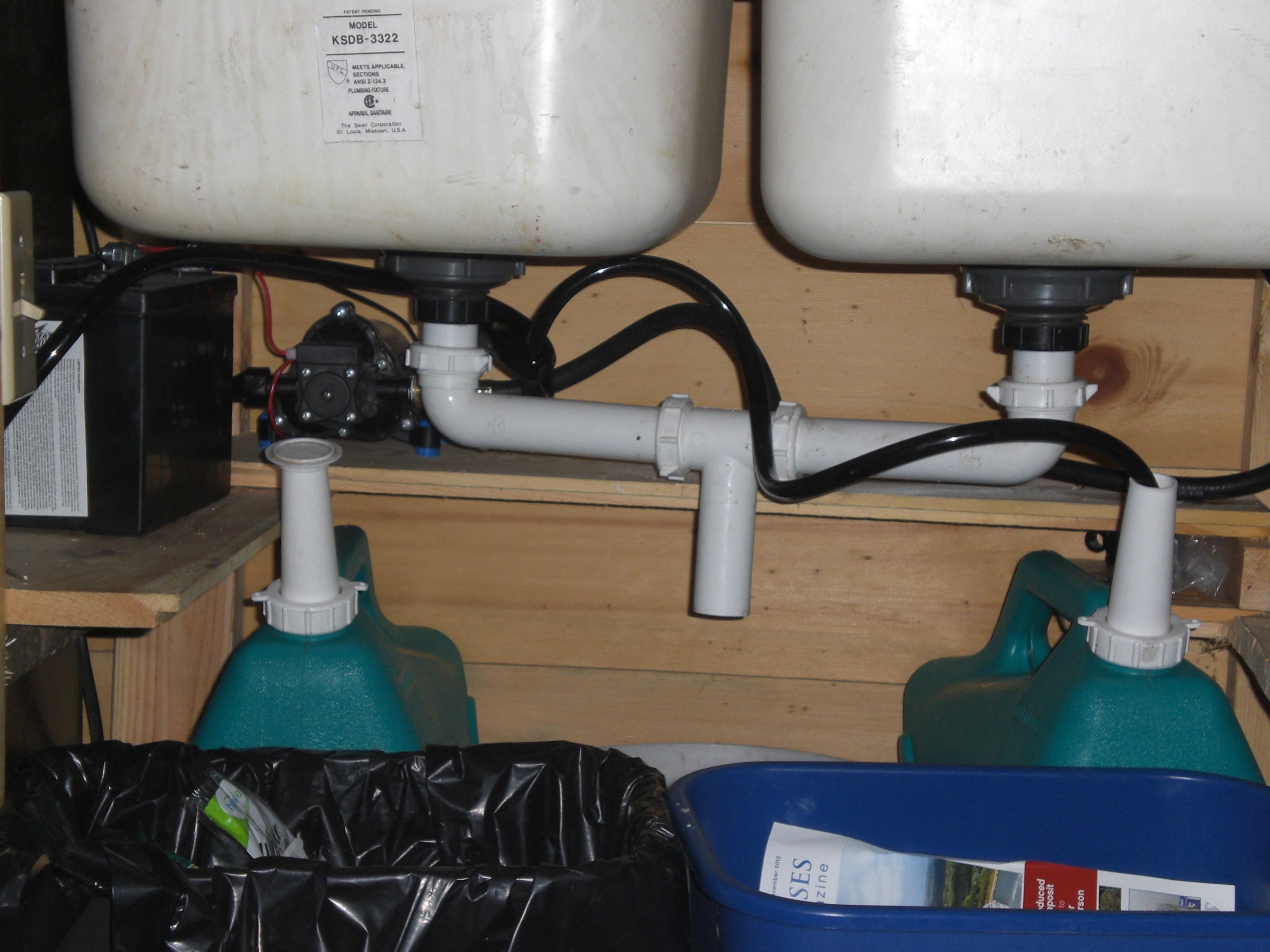 Becky: I know you wanted to come up with a system so the water jugs could stay on the floor, and ideally we could use a faucet mounted directly on the sink. How did you come up with the RV water pump idea?