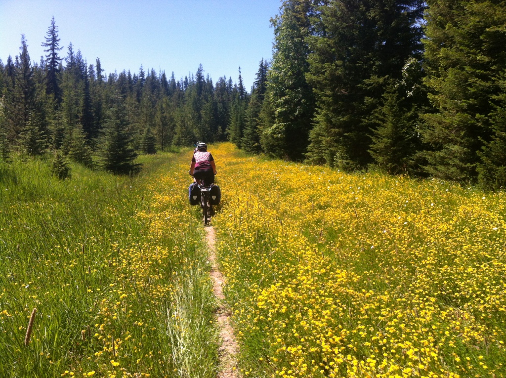 The remainder of the day was rolling hills on gravel roads in varying conditions. There were a few short sections of single track where grass and bushes had all but taken over the once drivable forest service roads.