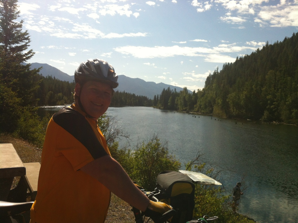 From Whitefish we rode 43 miles to the Wayfarers State Park in BigFork. The wonderful sisters who just opened the Whitefish Hostel made us delish fresh squeezed orange grapefruit juice and we dillied and dallied for quite a while before riding out. As we got into town before lunch the day before, we were in town almost exactly 24 hours and it really felt like a rest day (we having taken any actual rest days, and likely won’t).