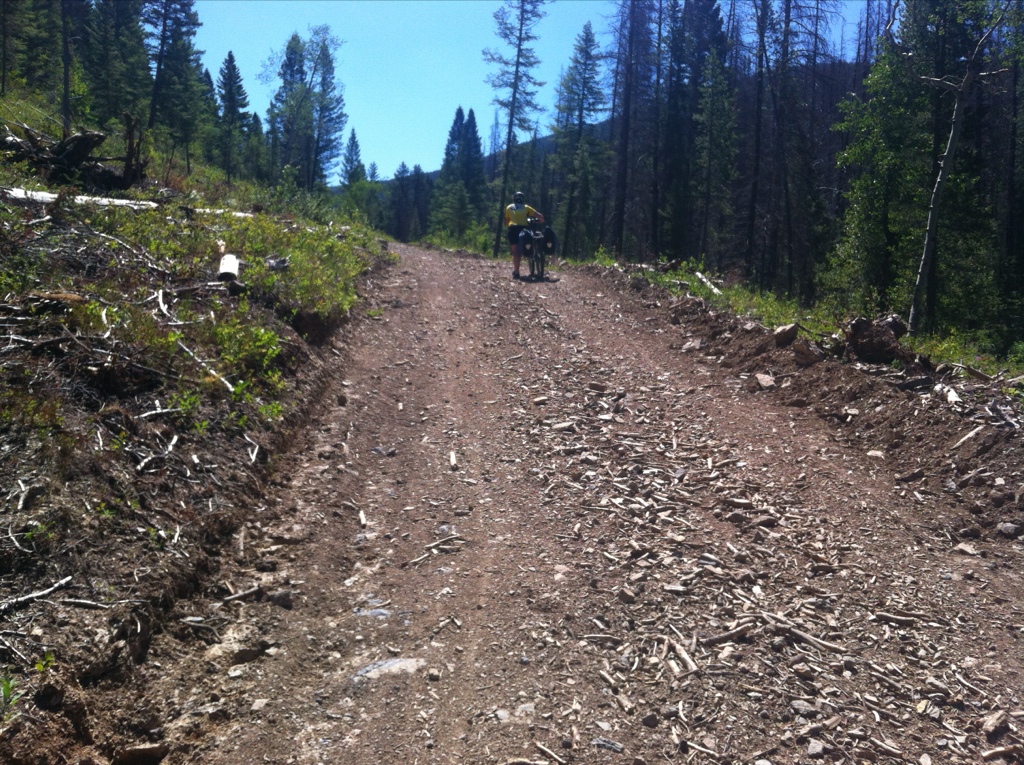 Whenever we aren’t on insane climbs or bumpy drops, we wind our way through endless rolling hills, often through endless miles of old mine sites and massive logging operations.