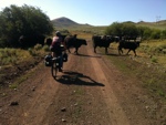 Moooove it cows! In addition to lots of cattle today we saw a coyote and a herd of 60 plus Elk. We startled them and watched them run through the sage, jump a fence, and head for the hills