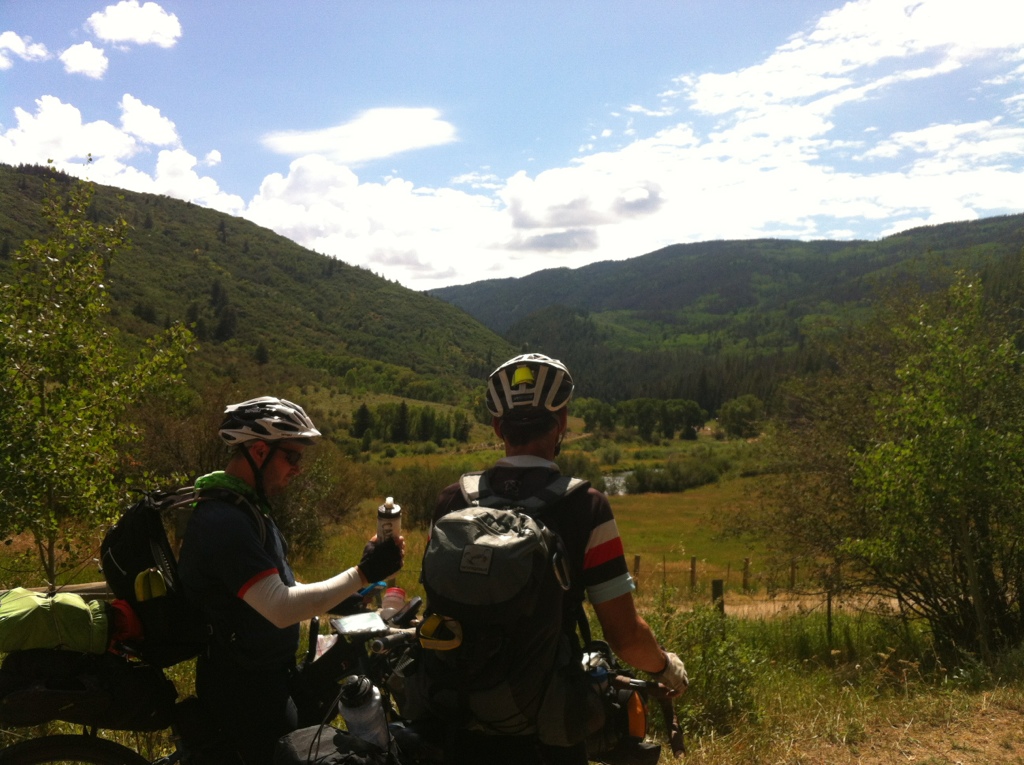 While frat games aren’t generally my style, there is something exciting about beating a guy like John at his own game, so I went into the liquor store before leaving town to buy a Smirnoff.  They wouldn’t sell me just one so I bought a six pack and left five with the cashier – totally making her day.  I carried it with me all the way to the summit of Ute Pass.  I gave John a little speech about us being friends and all, and how great it’s been riding with him.  I could see him getting more and more confused and nervous!  Then I Roger (who was in on this from the beginning!) presented him with the Smirnoff.  It took several minutes for John to overcome his laughter and surprise before he dropped to one knee and downed it like a champ!  Good thing we were at 10 thousand feet and the rest of the day was downhill!