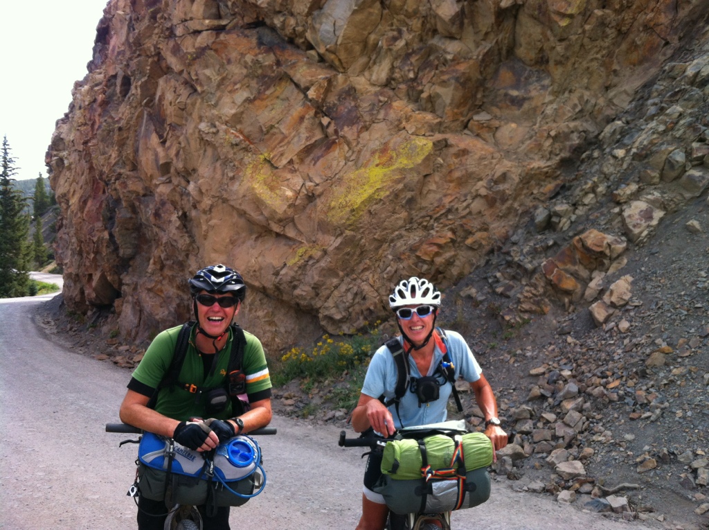From the pass we dropped down into Silverthorn and found a campsite at the Heaton Bay Campground on Lake Dillon. This made for a fairly easy 55 mile day.  Leslie’s road rash was a bit on the tender side though so she decided to continue the 16 miles on to Breckenridge and stay the night in a real bed.  John, Roger and I set up our tents and were quickly invited to a neighbors RV for pizza and beer.  We ended up having a fabulous 3 plus hour visit with an amazing couple in their early 80’s who have spent the bulk of their 40 year marriage touring the world on bikes, boats, and foot.  We all shared stories of adventures, good times, and hard moments.  It was a truly wonderful and inspiring evening.  In the morning we just had a quick ride down the bike path to Breckenridge and my official bike tour ended!  It was bittersweet arriving in town.  I was glad we had a day to spend playing in town before Roger and John continued on.  We met up with our Brit friends Kevin and Susan who we’ve been leap-frogging with for weeks.  We all had a rest day together!