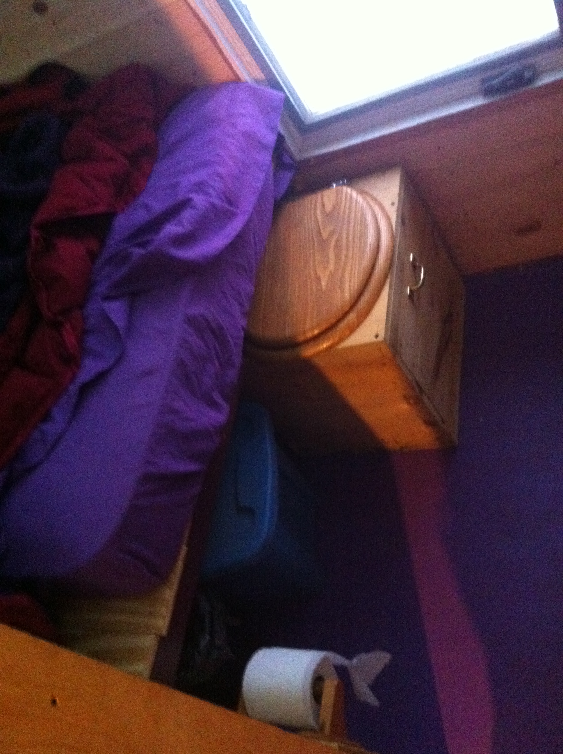 My toilet and sawdust bin now slide easily in and out from under the spare bed, neatly tucked out of the way when not in use.