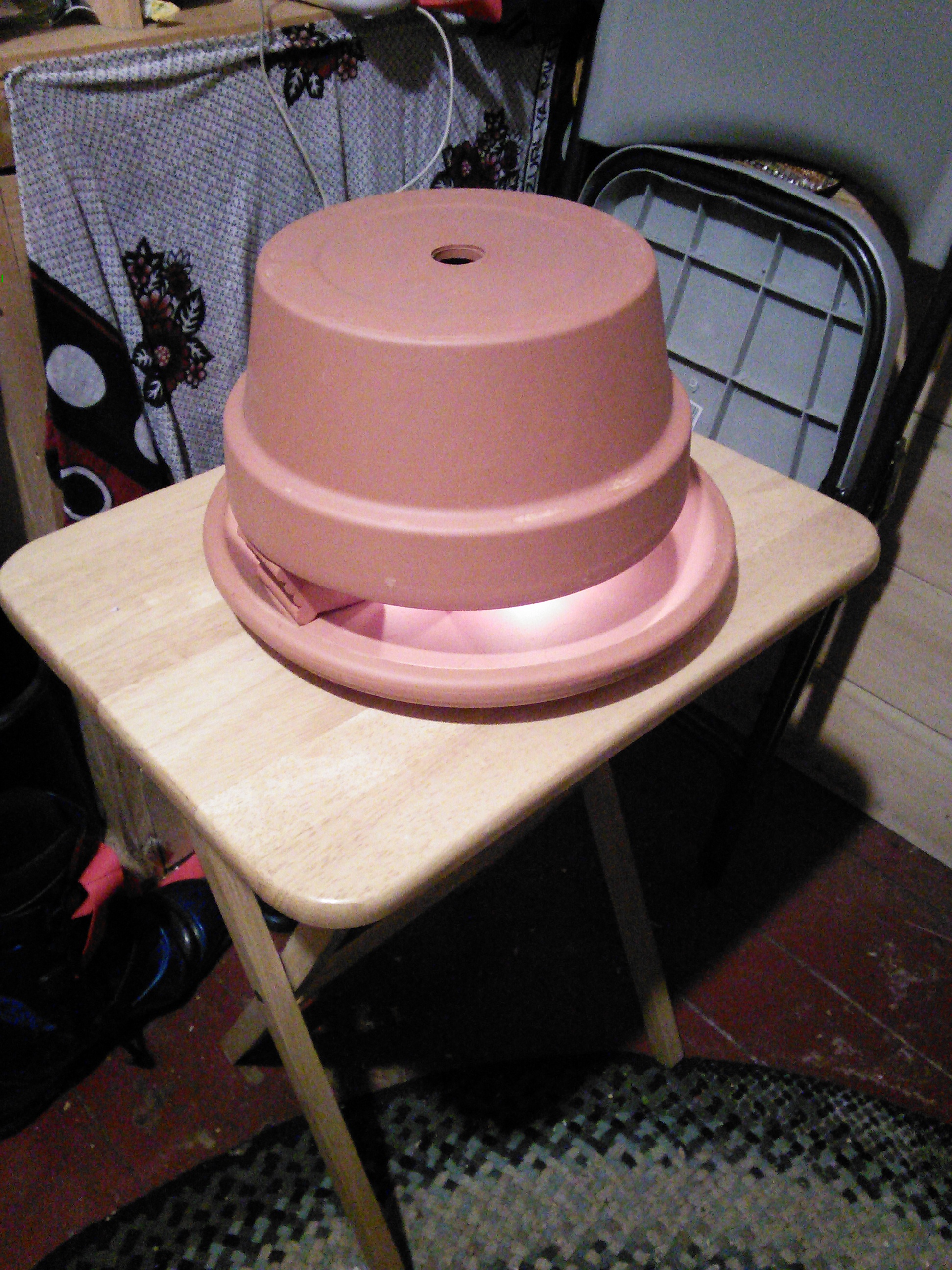 I decided to pick the whole darn thing up, carry it outside to the porch, and dump a lot of snow on it. that worked like a charm! The inside of the small clay pot is burned black in it’s entirety. Sadly by needing to have the door open and the fan on for a while I lost far more heat than I had gained by using the heater! So in the end, I am glad I tried this experiment, I’m glad I spent less than $5 on materials, and I’m glad I don’t need to rely on it to heat my house!
