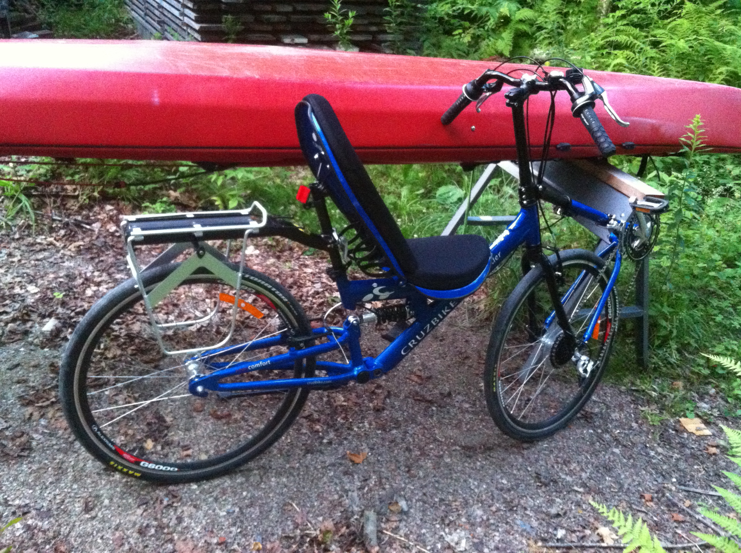 As everyone knows, I love the toys that allow me to go on fabulous adventures! I finally got around to selling two bikes this spring and am currently trying to sell a third, so I decided that it was time to rebuild my fleet with a little spice. I’ve been curious about recumbent bikes for a long time, and ridden one now and then but never enough to know them well. Over the last month or so I’ve done a lot of research and decided I wanted to try a CruzBike. While most recumbent bikes have long chains (pedals out in front, derailleurs on the rear wheel), CruzBikes are Front Wheel Drivel, thus maintaining a “normal” chain length. There are pro’s and con’s to this set up, but in all my research I decided the pro’s won. They have several models available and I really wanted the Quest, but couldn’t afford one so I settled for their intro bike, The Sofrider. I figure if I fall in love with it I’ll resell it next year and invest in the Quest!