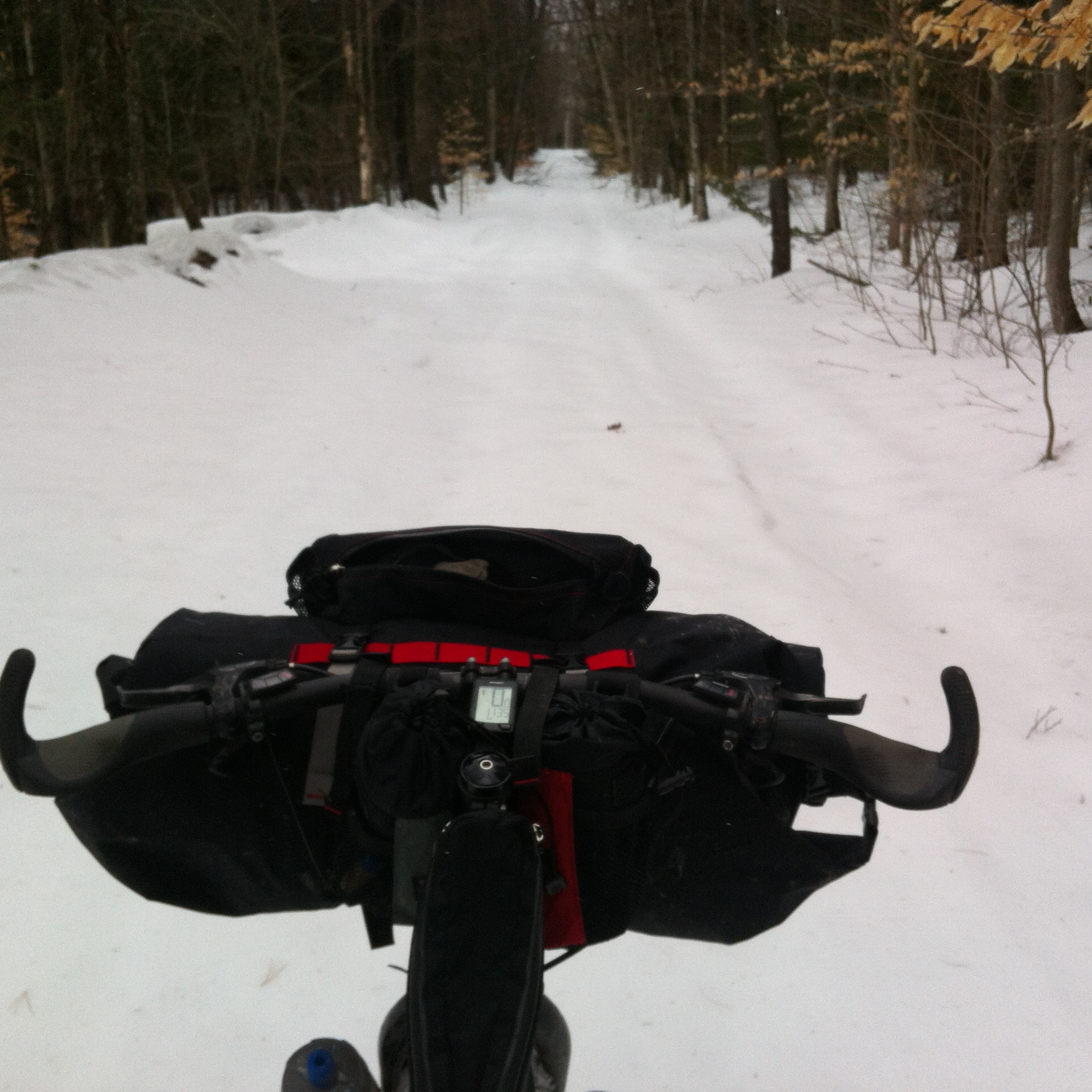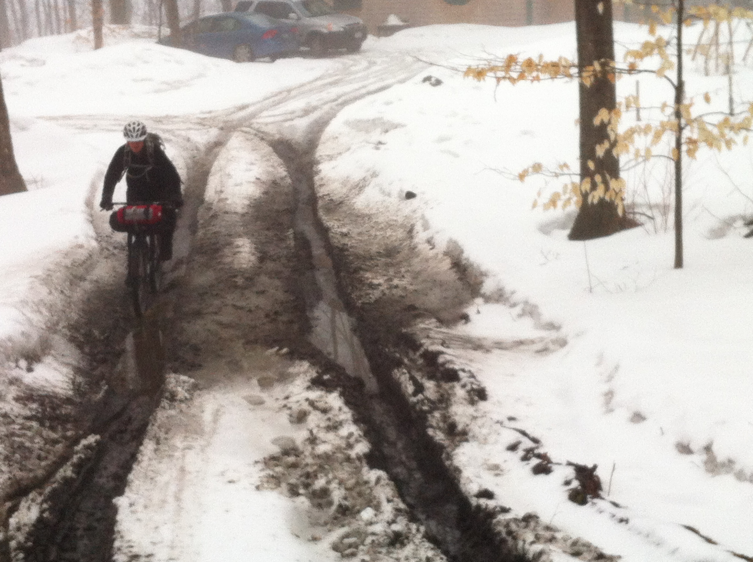 Last week was Leslie’s spring vacation, so she loaded up her bike and gear and drove to Vermont from her home in Buffalo.  We spent a fabulous 3-4 days pouring over maps, riding on rough muddy and snowy roads, and prepping food for our trip.  I’ll do a separate post shortly about food prep as we’ve decided to do a lot of cooking ahead of time and dehydrating our own meals.  In the meantime, here are some highlights of her visit.