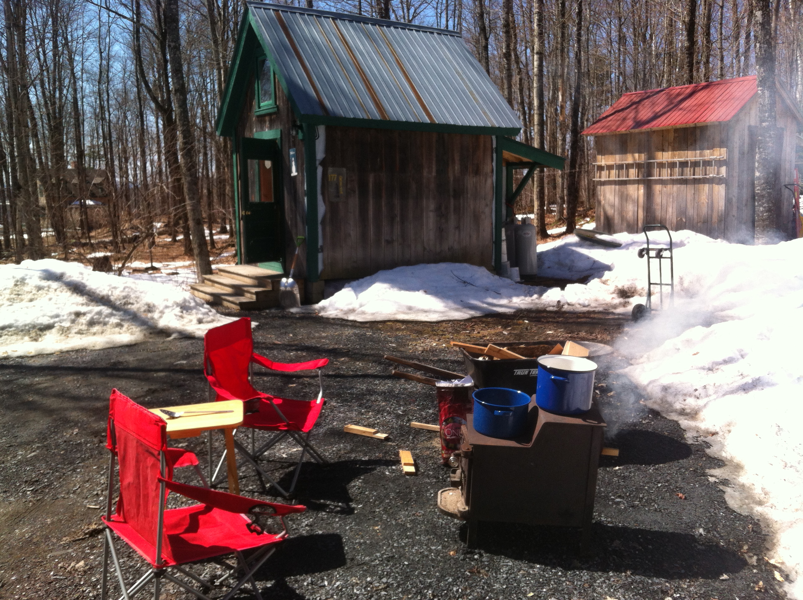 Another spring project was to tap a maple tree, just one… My plan was to just drink the sap and use it to make tea and oatmeal. It was delicious but I got way too much! So once I’d stored up about 6 gallons, I dragged this old wood stove out of it’s storage spot in my shed and got to boiling.