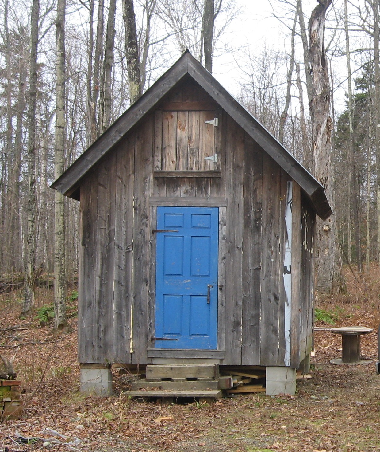 This antique blue door goes back in my family several generations so while it wasn't warm enough to leave on my house, it now adorns our tool shed.  The upstairs loft access door is now I window thanks to the ReStore in Burlington!